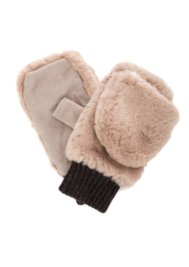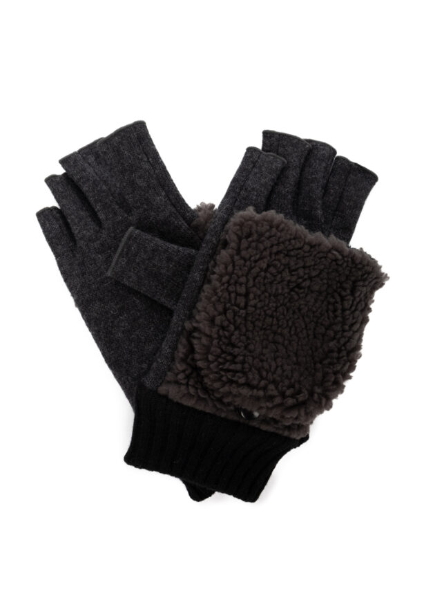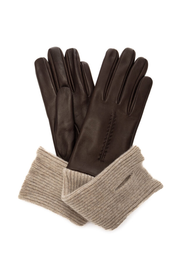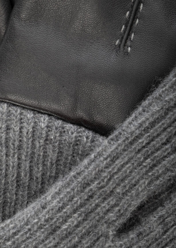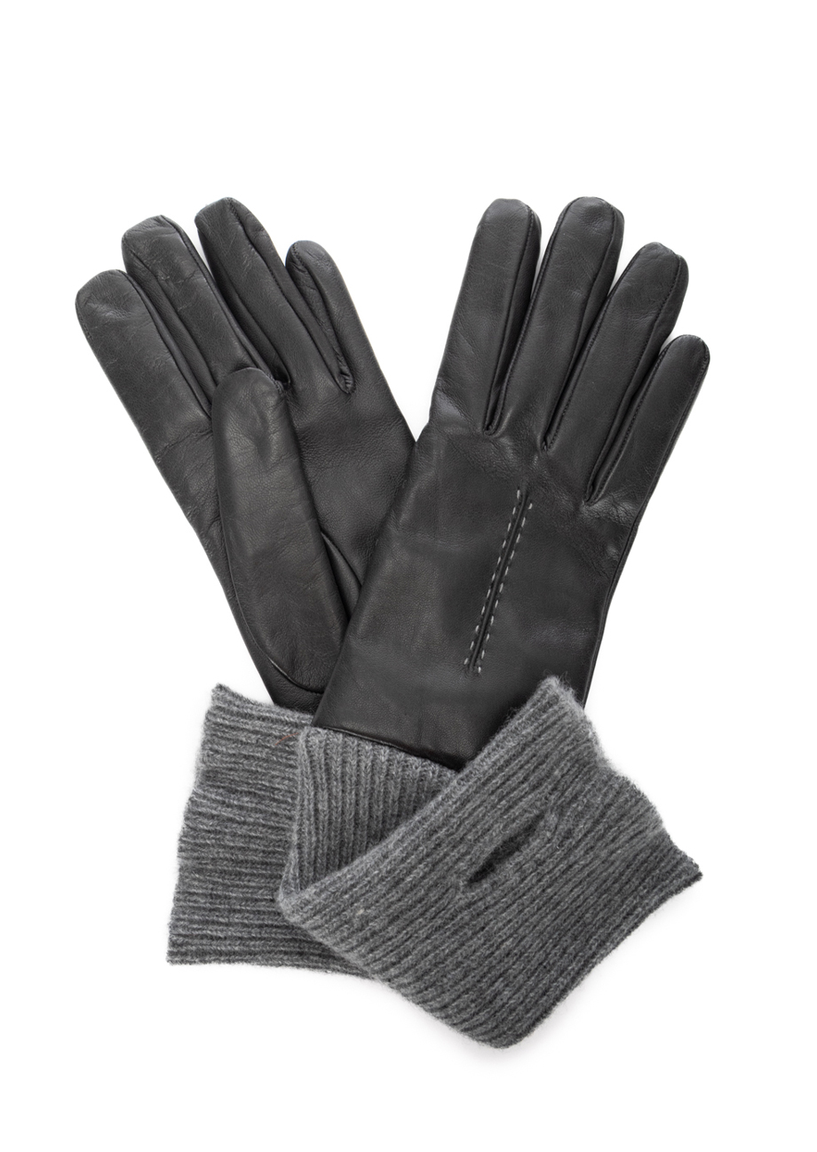 S'AMUSER Lederhandschuhe mit Strick-Stulpen – Grau
