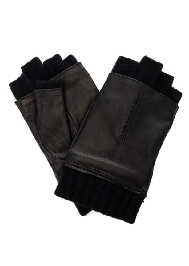 Fingerlose Lederhandschuhe mit Stulpen - Grau
