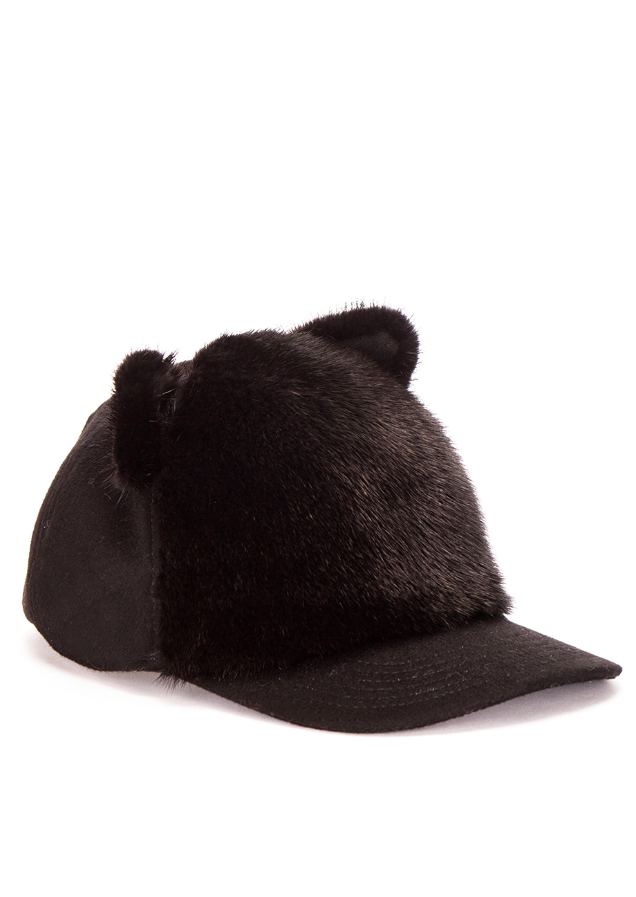 LUCA DELLA LAMA Kappe mit Fell-Besatz in Schwarz
