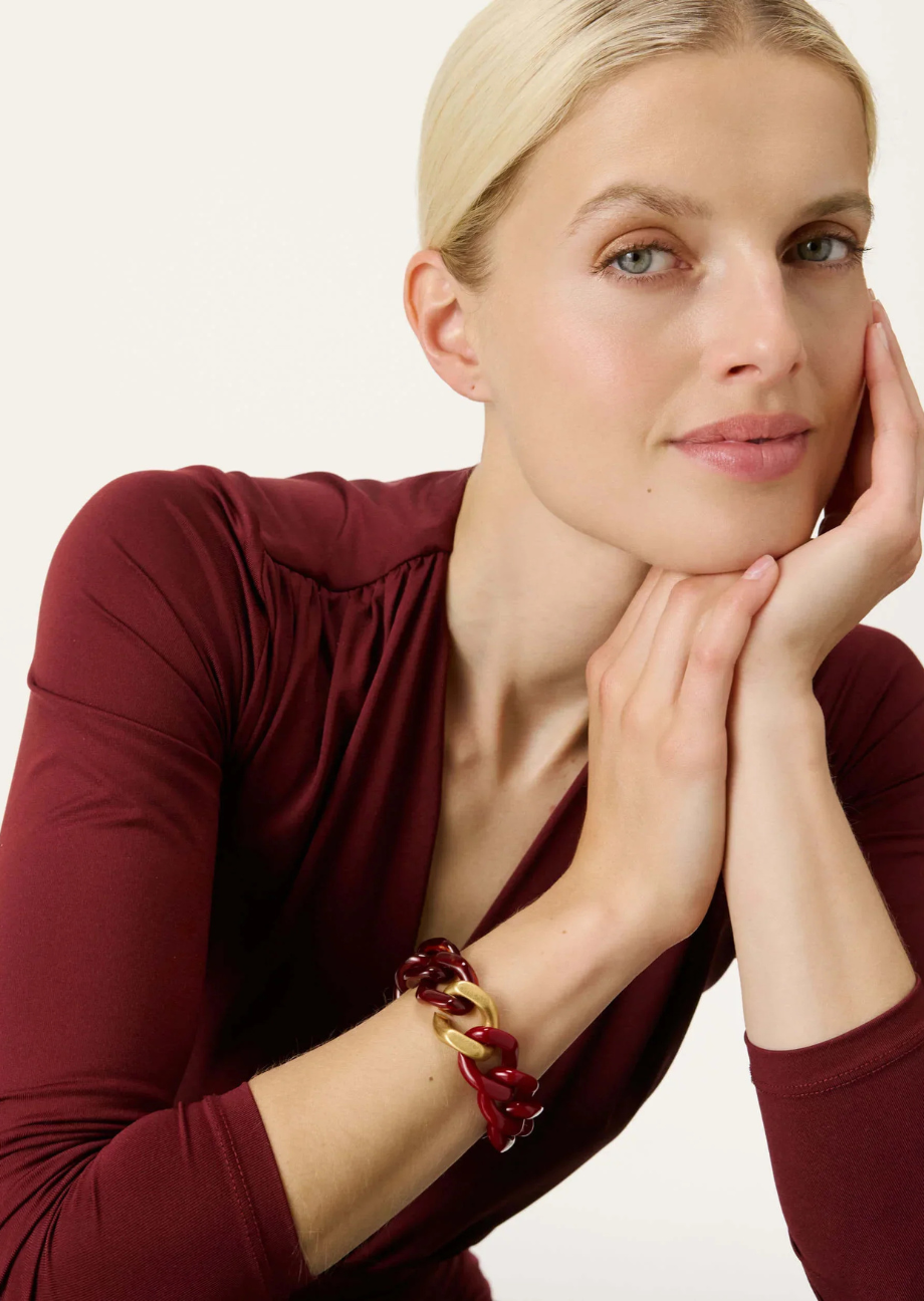 VANESSA BARONI Armband “Flat Chain”– Gold/Bordeaux