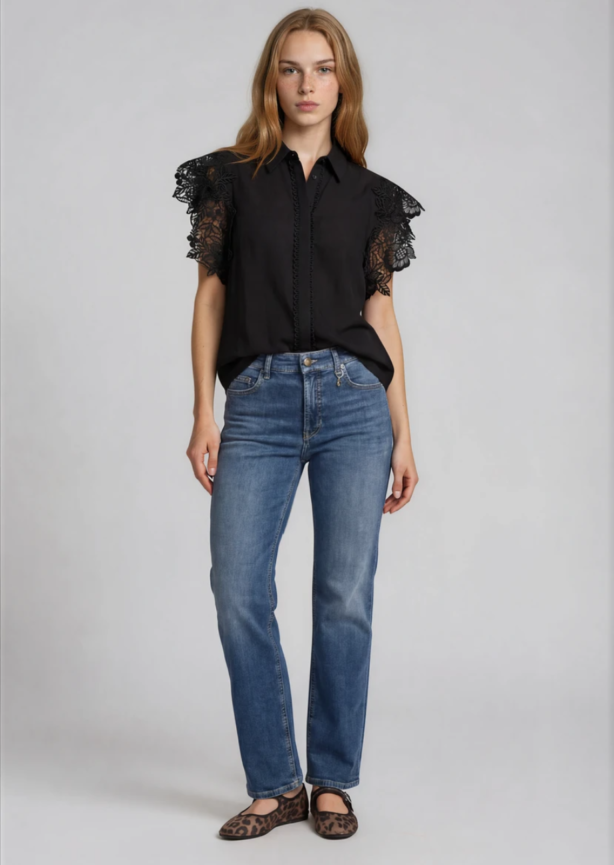 - Weite Ärmel, verstellbare Manschetten