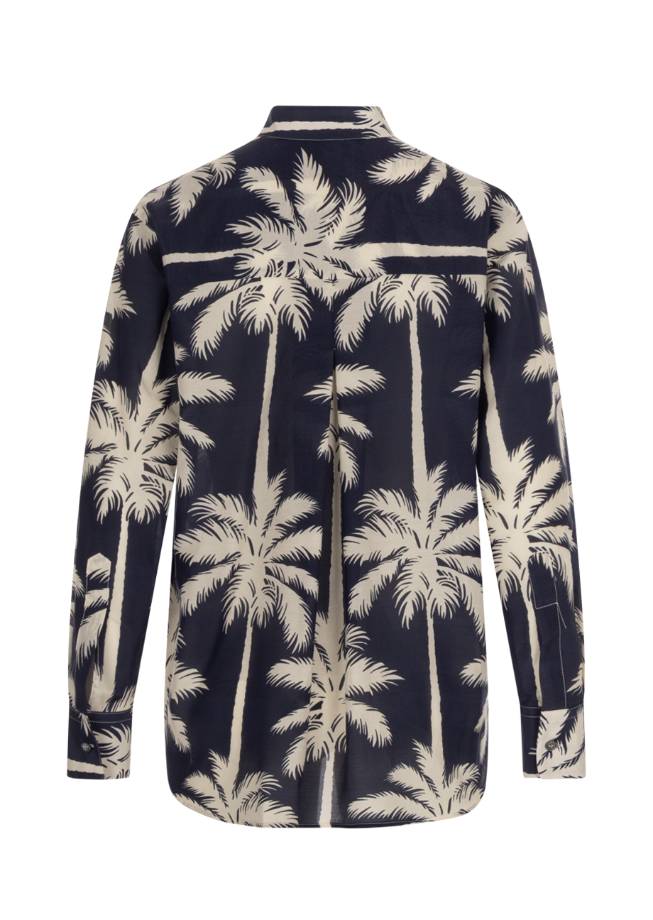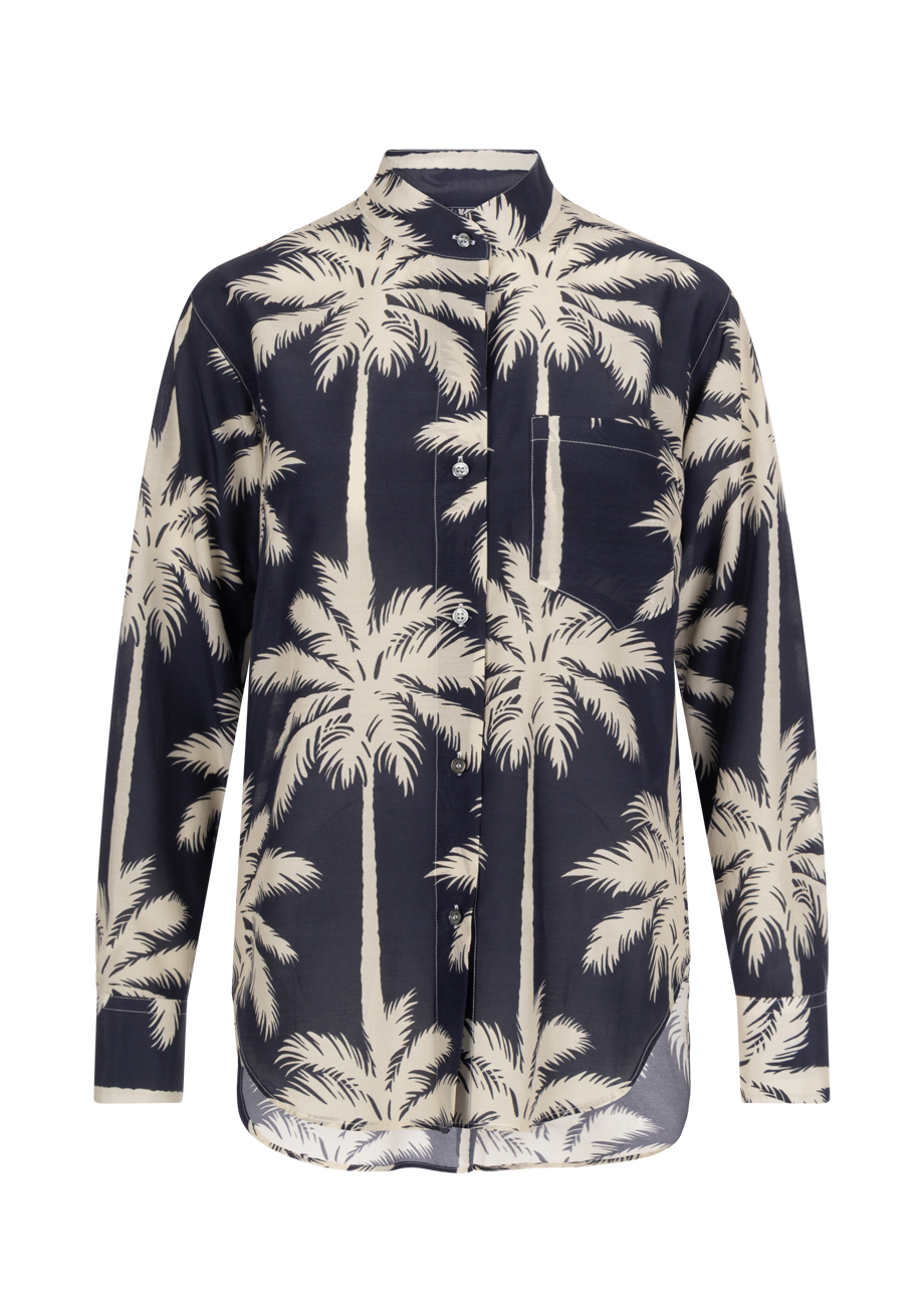 - Luftige Bluse mit tropischem Print in Blau und Offwhite