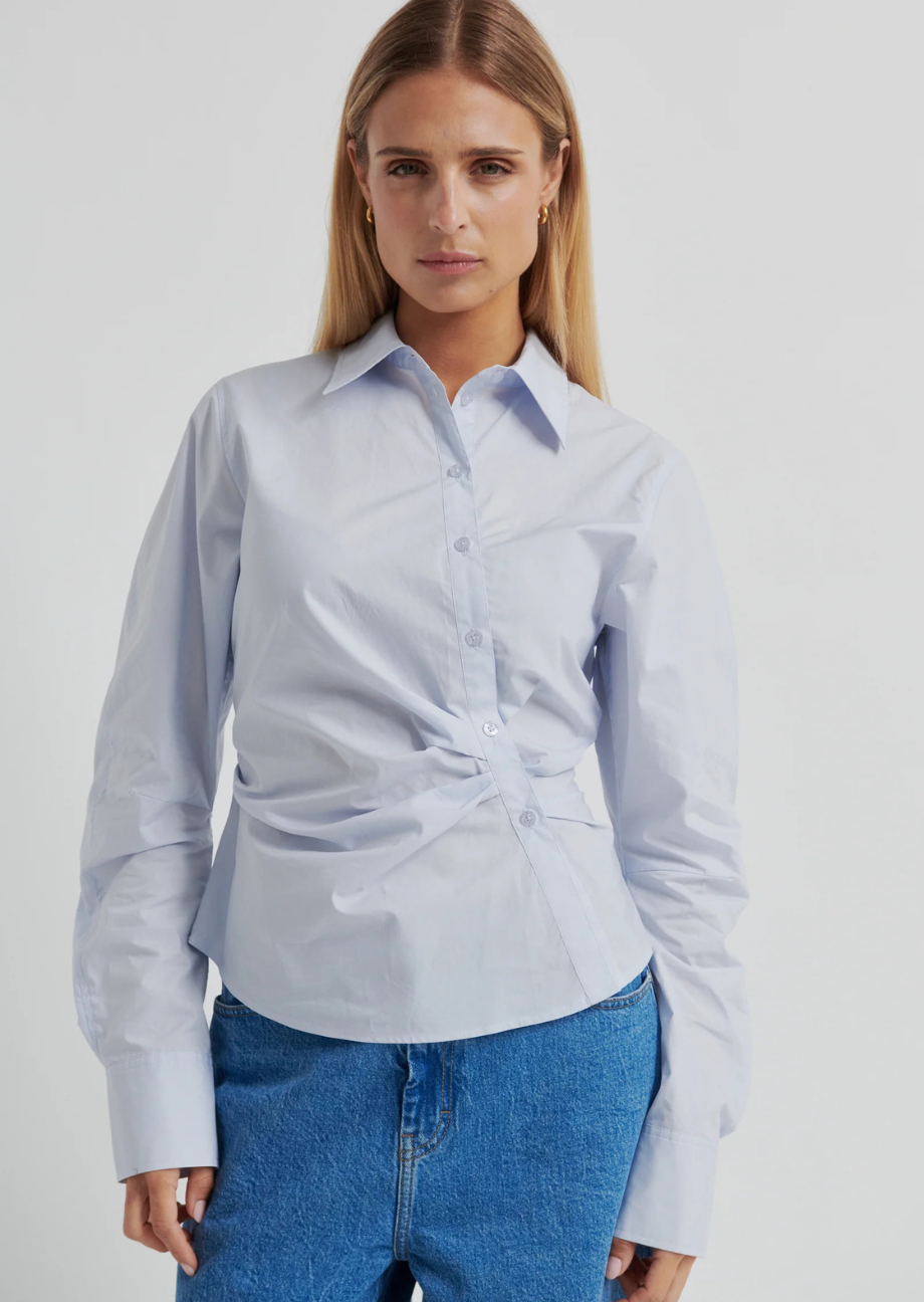 - Asymmetrisch geraffte Bluse in Hellblau