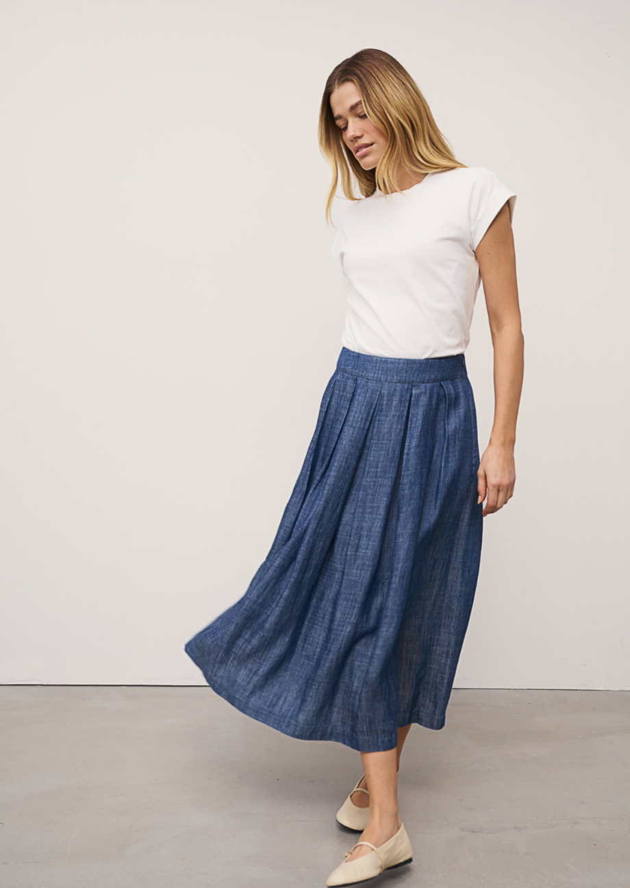 - Faltenrock in Denimblau