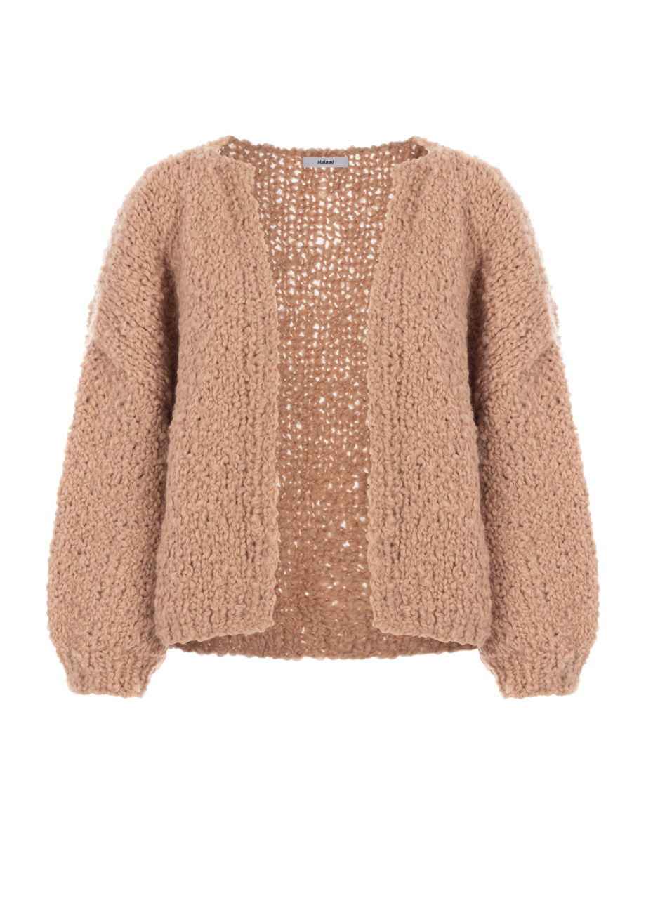 Gemusterte Strickjacke aus Wolle – Kamelbraun
